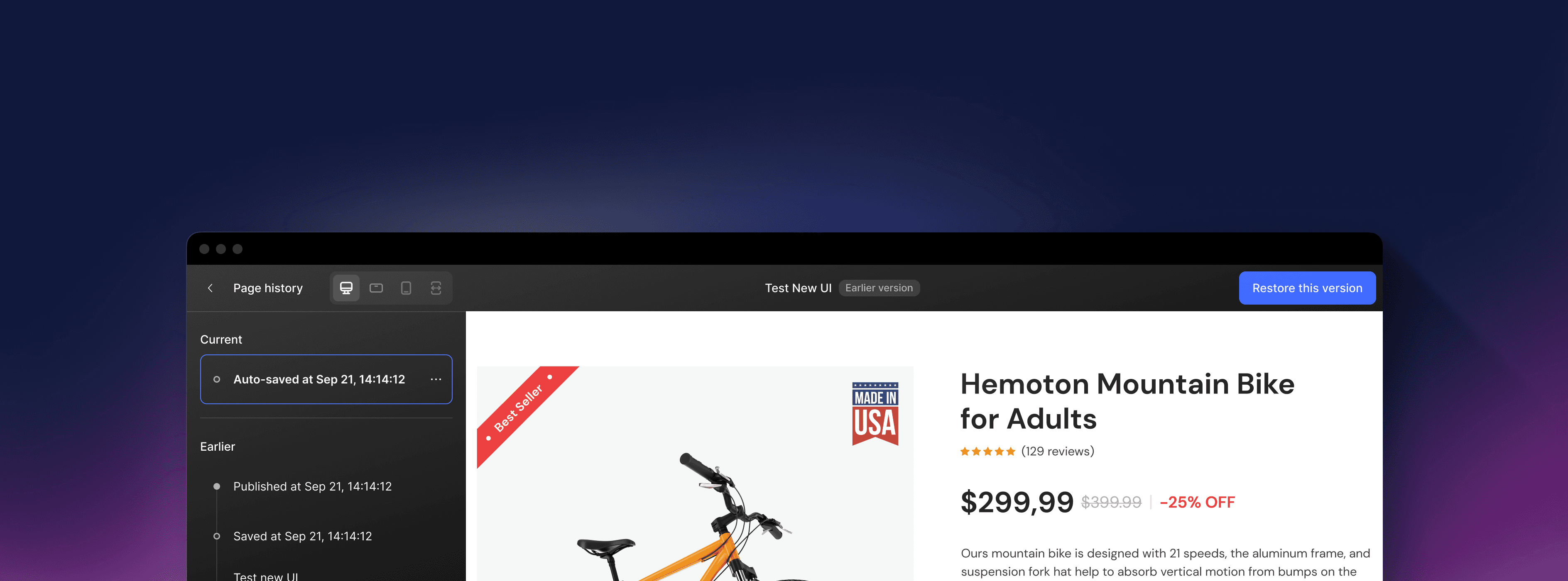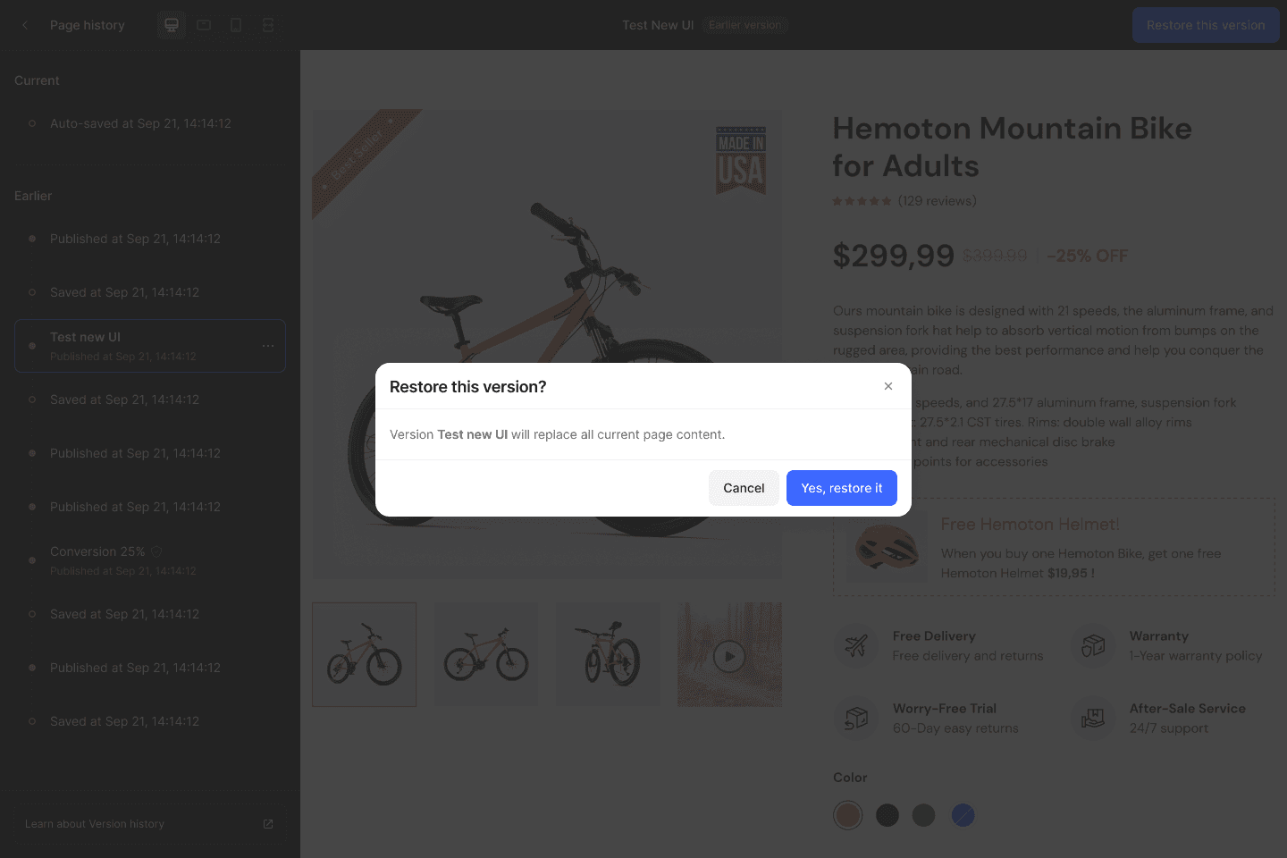 Below are some completed screens showcasing Auto-save & Version History. Feel free to use GemPages yourself to experience it fully.
